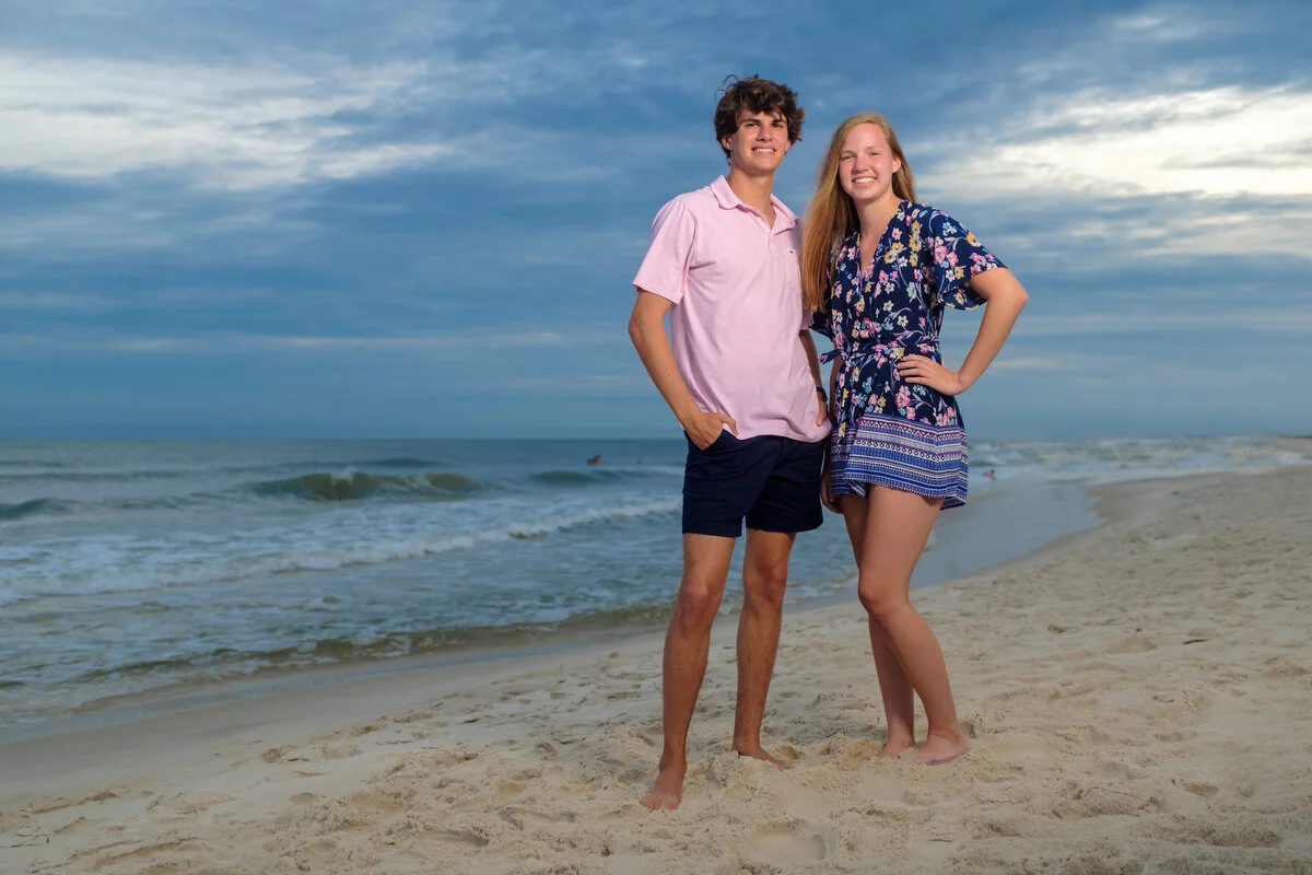 This family session at Dauphin Island took place on an overcast evening. These type of conditions can produce some very dramatic looking skies even though it can look dull and flat while shooting. These conditions are great for natural light portraiture but the backgrounds can look boring. Using portable studio lighting brings in the details and colors of the sky giving the portraits a painterly look.